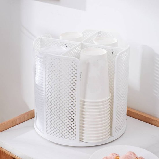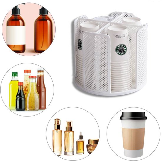 Rotating cup holder for paper cups - holder with four compartments - with 360° rotating base - suitable for kitchens, bathrooms and coffee bars - white