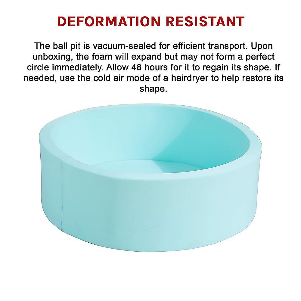 The ball pit is vacuum-sealed for efficient transport. Upon unboxing, the foam will expand but may not form a perfect circle immediately. Allow 48 hours for it to regain its shape. If needed, use the cold air mode of a hairdryer to help restore its shape.