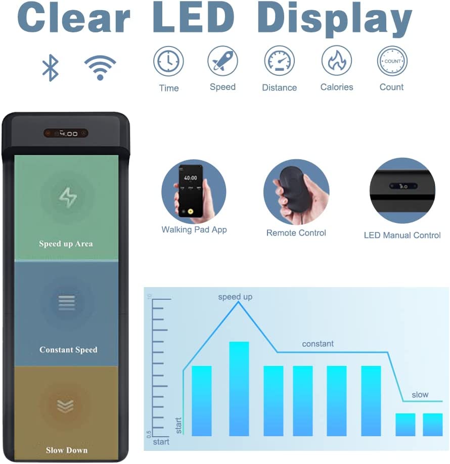 Large LED display, Smart Remote, Smart Workout APP - Sardine sport walking treadmill, Download the APP Walking Pad, Free Tutorial is available. Make it easy for you to track speed, distance, time and calories in real-time and no need to switch the display manually during exercise. Using the remote controller to change the speed or stop the running machine.