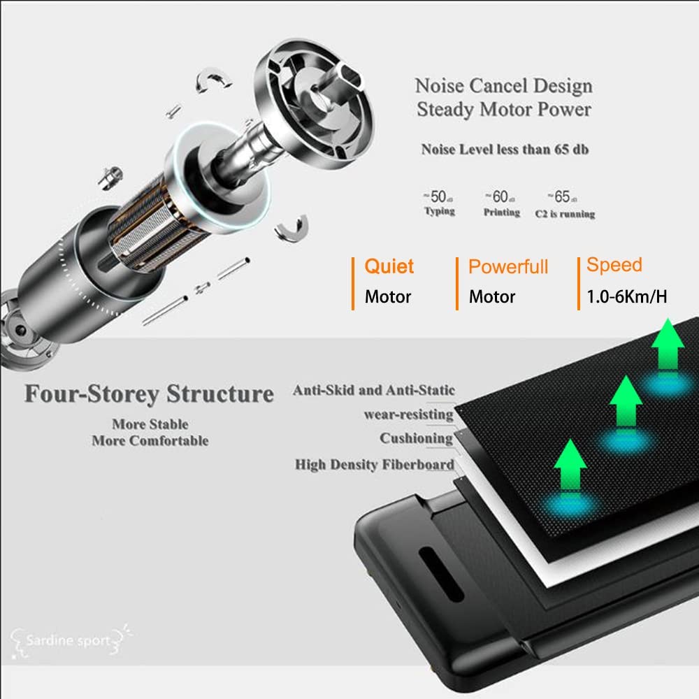 Safety, Large Wide Running Belt - Compared with other treadmill's thin running belt, Sardine sport C2 walking treadmill under desk treadmill has a 120 x 40 cm large wide running belt, with a better comfort level, smooth, balance and stable feeling, and solid design. it is so big enough to walk or moderately-paced running safely on, relaxed, freely! Suitable for all people within 100kg no worry to enjoy the fun of walking or slow running indoors!