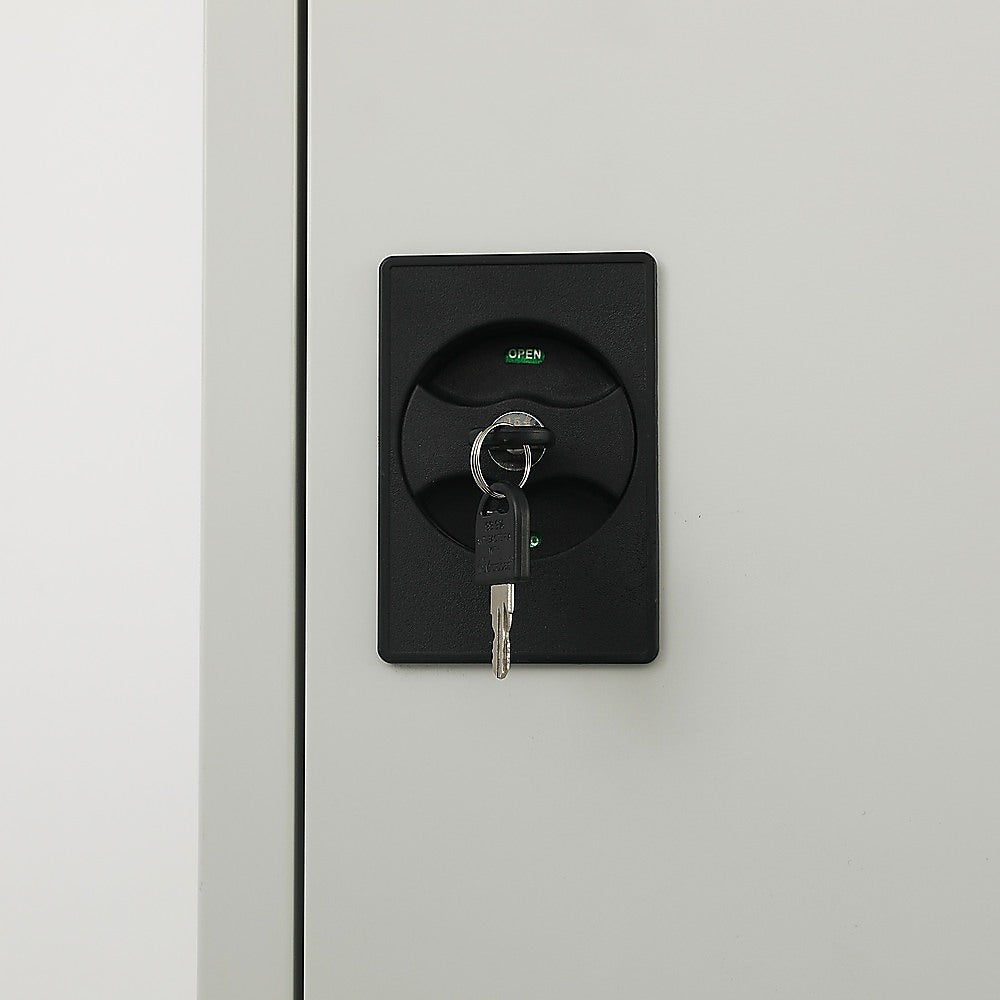 This metal locker has a compact and lockable design, ideal to keep anything out of sight in the home or office.