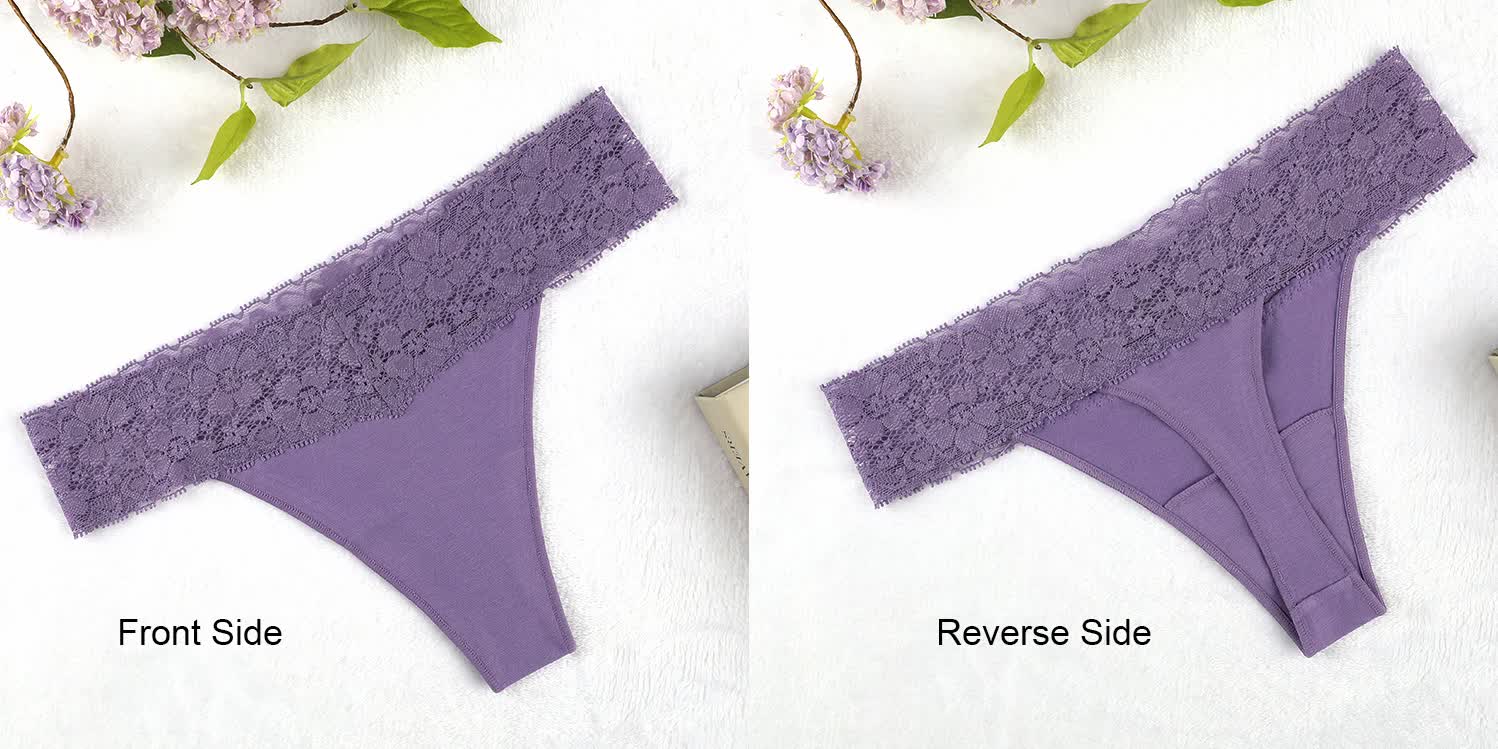 Upgrade your lingerie collection with this 4-pack of lace-trimmed thong underwear. Designed for comfort and style, these thongs feature a soft, breathable fabric with a delicate lace waistband for a feminine touch. Available in a variety of vibrant and neutral colors, this set offers both versatility and elegance for everyday wear.