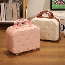 This compact 14-inch luggage case is the perfect combination of style and functionality. Designed for makeup storage, it features a sturdy ABS exterior with a stylish geometric pattern and a comfortable handle for easy portability. With its sleek and minimal design, this case is perfect for travel or everyday use, offering secure storage for your cosmetics, toiletries, or small personal items. The interior is lined with a durable coating to keep your items safe and organized.