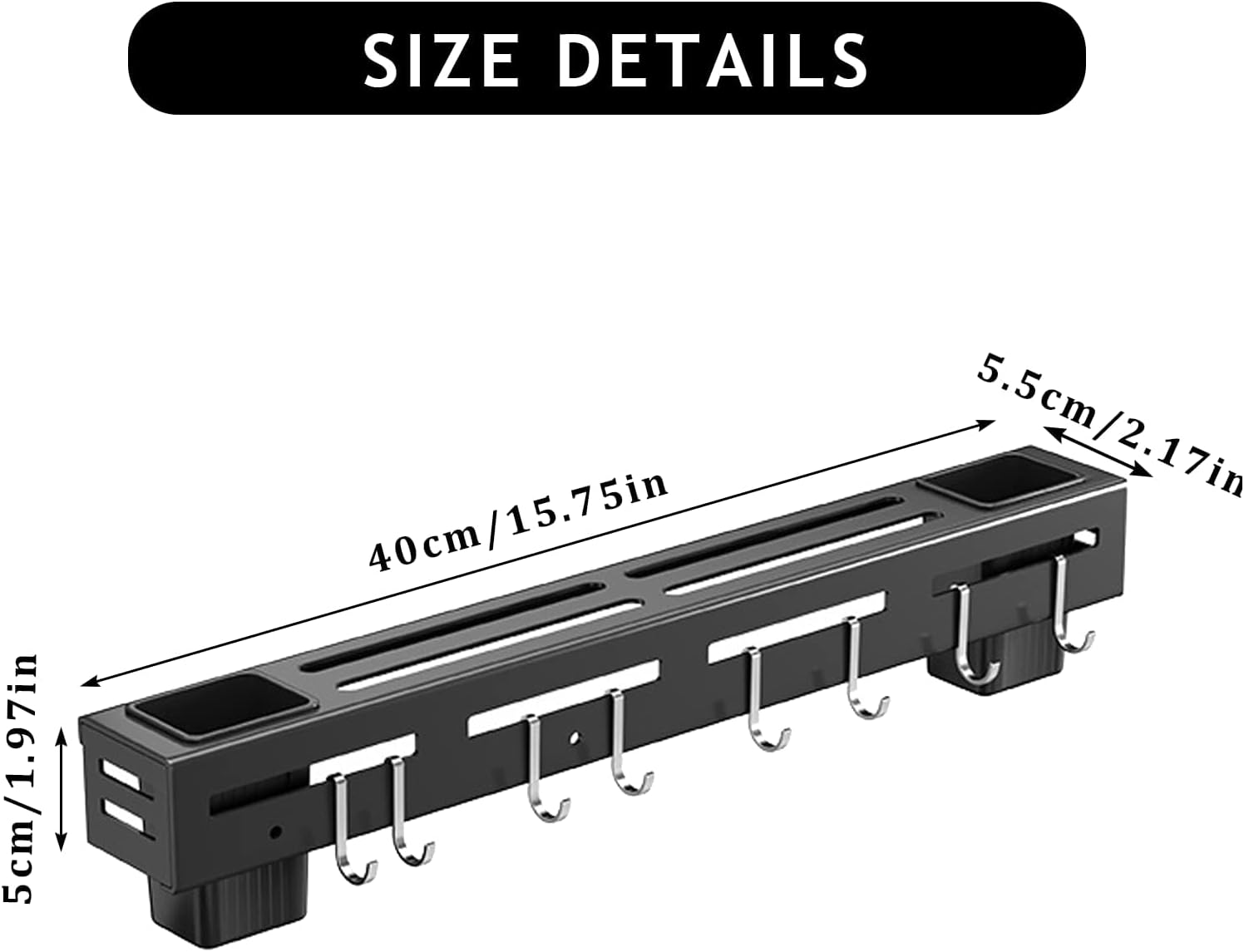 Make the most of your wall space. Short on countertop space This smart stainless steel kitchen rack instantly creates extra wall storage. Its the perfect solution for neatly and clearly displaying your frequently used spatulas, ladles, whisks, and other kitchen utensils. Easy installation without drilling. No need to worry about drills or drilling holes in your beautiful tiles. This kitchen rail is designed for drillingfree installation. Thanks to the strong adhesive system, you can securely attach the rail to smooth surfaces. Ideal for rental properties or for those who want to keep their walls undamaged. Durable and flexible. The rack is made of highquality stainless steel, meaning its moistureresistant and rustresistant. The rail comes with 6 adjustable hooks. You can adjust the distance between the hooks to easily accommodate even wide pans or cutting boards. Versatile. While perfect for the kitchen, this hanging system is also ideal for the bathroom for towels, a bar, or a restaurant kitchen. The sleek silver design complements any interior. Specifications Material Stainless steel stainless steel Color Black Number of hooks 6 pieces slidable Application Suitable for kitchen utensils, towels and light pans