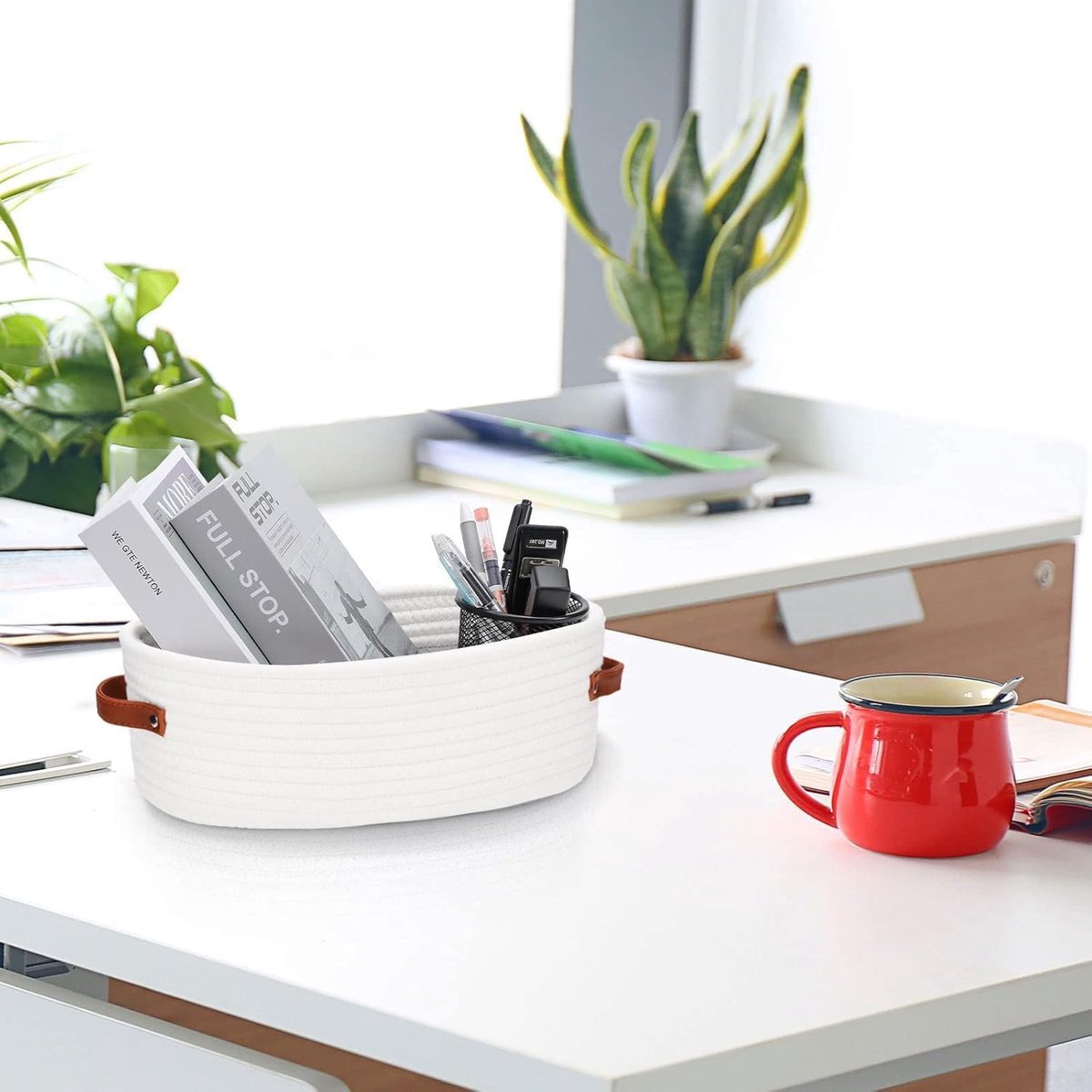 - Storage Basket: Our woven baskets are made of high-quality materials, safe for children and pets. The double-stitched handles ensure durability and prevent tearing. Meets your long-term storage needs. 2. Storage Basket: This decorative basket has sturdy faux leather handles for easy grip, making it easy to move to a table or countertop. Our cotton rope baskets are not only practical but also stylish! They suit any interior style, from rustic to country. 3. Toilet Paper Storage Basket: Our bathroom storage basket measures 33 x 14 x 10 cm. Perfect for storing toilet paper, towels, soap, shampoo, or other bathroom essentials. Use this basket to keep your bathroom tidy and organized and create more space. 4. Bathroom Storage Basket: These cotton rope baskets are shipped folded. They can be quickly returned to their original shape; simply fill them with towels or blankets and iron them for quick cleaning. Machine washable; a laundry bag is recommended. 5. Bathroom Storage Basket: This compact storage basket suits various interior styles and needs, making it ideal for bathrooms, bedrooms, living rooms, and hallways. Show more