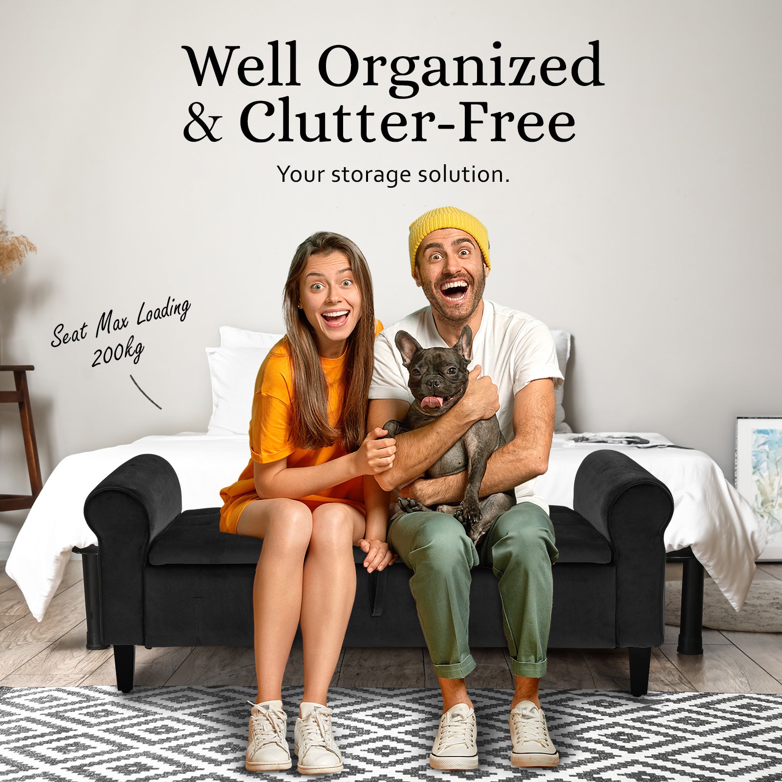 Lift the lid, and voila! You've got a roomy storage space inside - great for keeping blankets and pillows neat and tidy. Putting it together is a breeze, and the wooden legs bring a touch of warmth to the design.