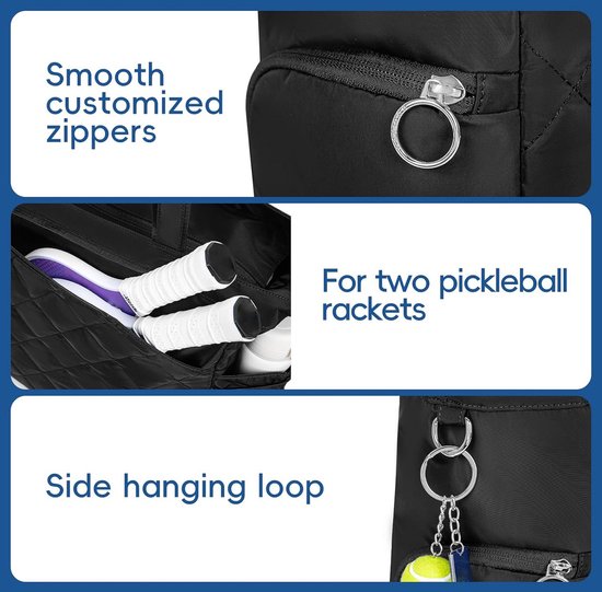 The wide, padded shoulder strap helps distribute weight evenly and increases comfort, even during extended use. Suitable for tennis, pickleball, the gym, commuting, and weekend getaways.