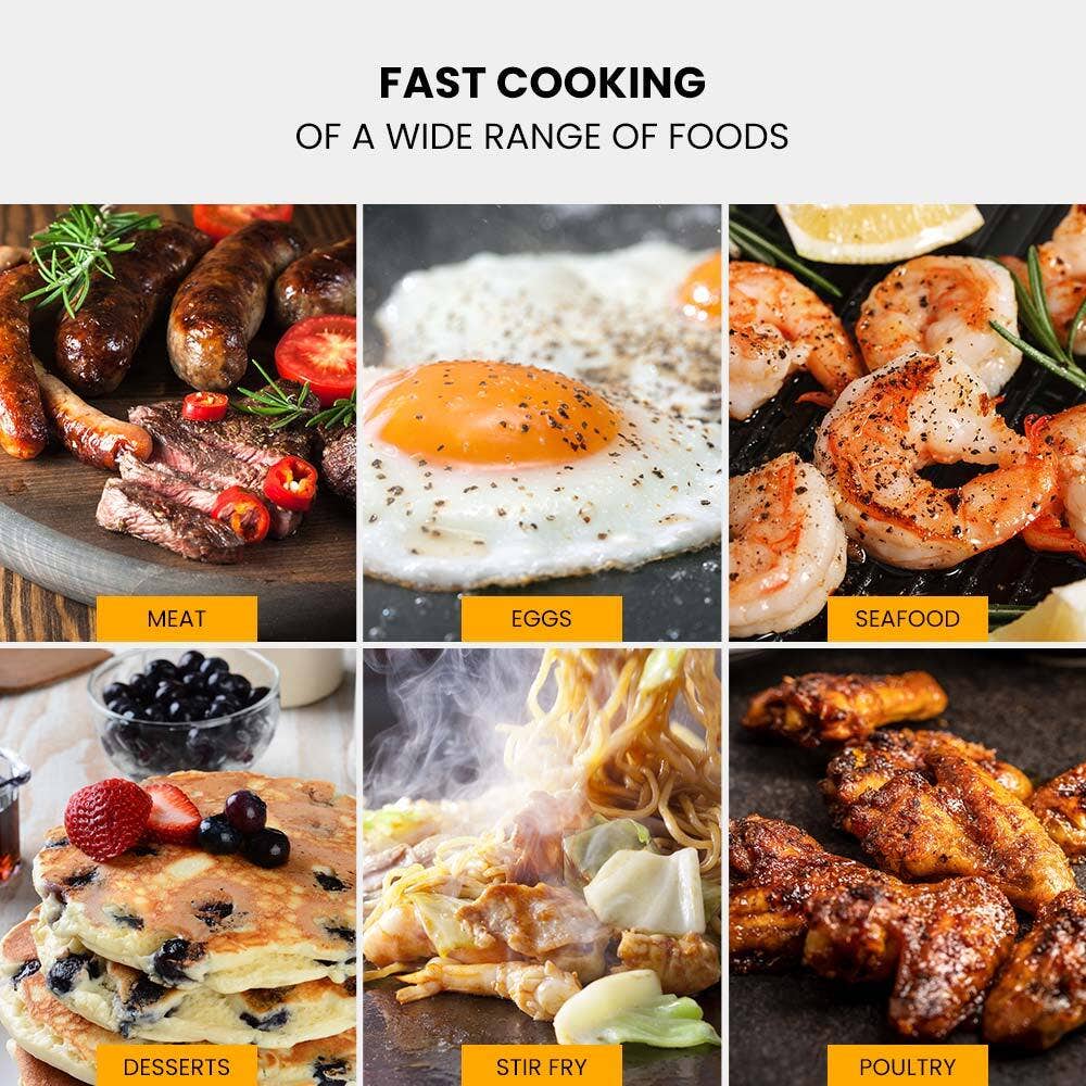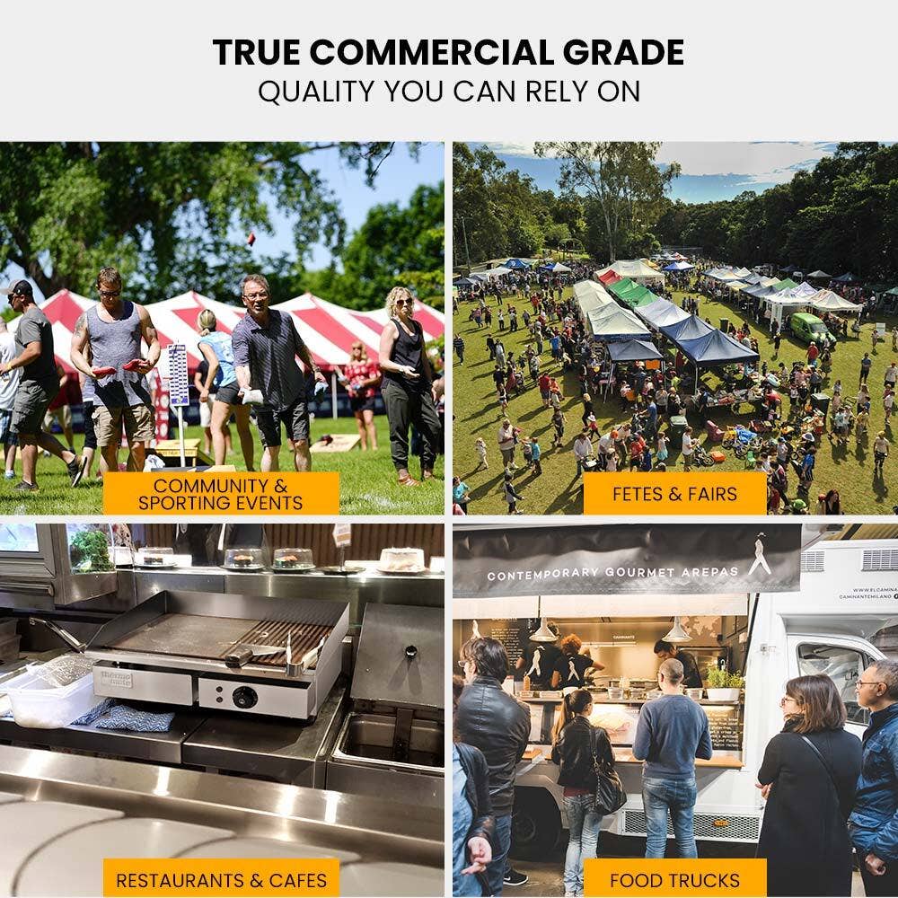 The Thermomate Commercial-grade Electric Griddle is the perfect countertop cooking solution for busy food vendors. A comprehensive heat element is powered by 4.4KW of heating power via the convenience of two 10A plugs, so you can use it anywhere. With dual zone temperature control from 50 to 300°C, it offers the versatility to cook everything from steak to stir-fry’s to pancakes.