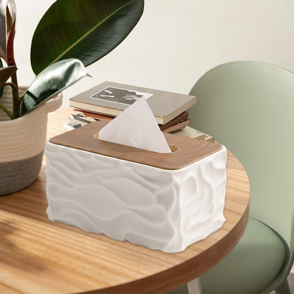 Material Made of wood and plastic, this wooden tissue box cover will add a touch of elegance to your bathroom, dining room, office, home and car.