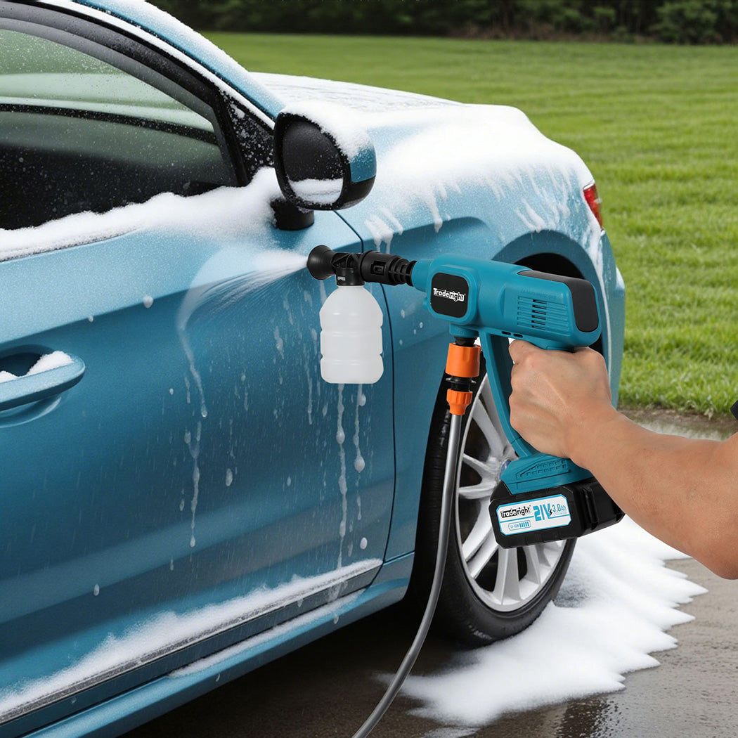 Designed for versatility, this outdoor pressure washer can draw water from lakes, rivers, buckets, or bottles, making it ideal as a portable car washer or camping pressure washer. The lightweight, wireless design lets you use the wireless car wash gun effortlessly on the go. Complete with battery, charger, hose, filter, and storage bag, this pressure washer is ready for any task.