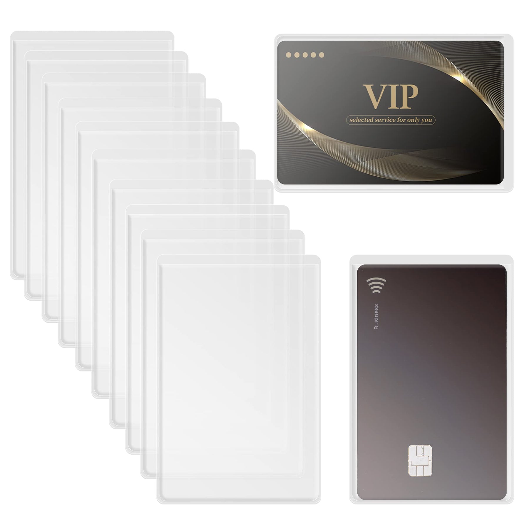 Easy to Use This transparent PVC card holder is suitable for health insurance cards, ID cards, business cards, gift cards, credit cards, etc. You can also use it to store passes, staff cards, VIP cards, etc., preventing loss and scratches. The open design allows for easy insertion and removal of cards, and the card holder ensures easy removal of cards to prevent them from accidentally falling out.