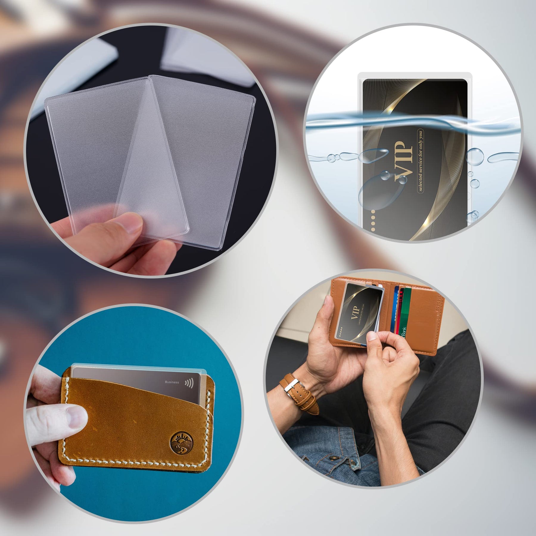 Material Made of soft and elastic PVC material, the transparent card holder is durable and waterproof, effectively protecting your cards from dust, water, scratches and other external factors.