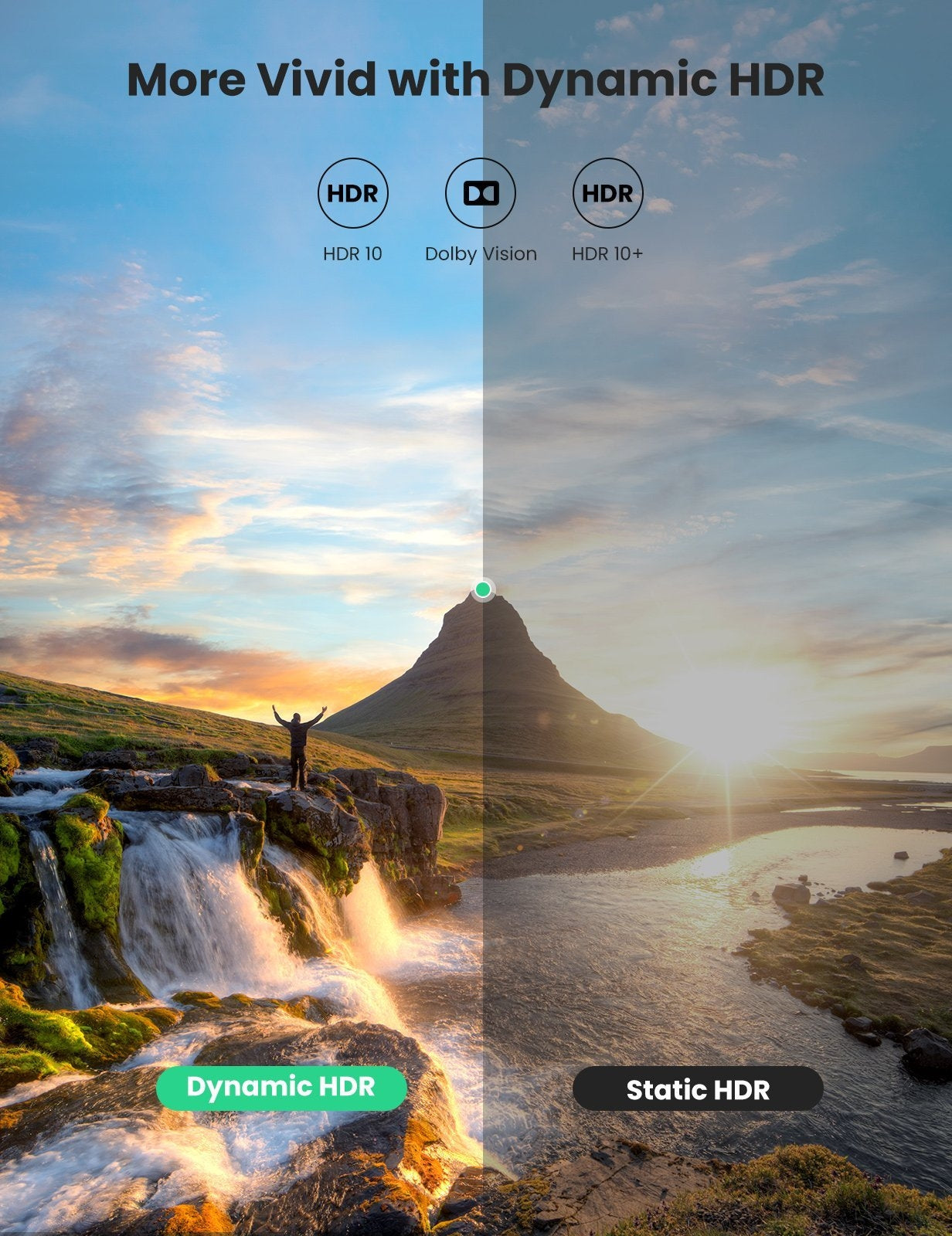 The hdmi 8k cable hdr provides you more vivid picture with dynamic hdr, supporting Dolby Vision HDR, HDR 10+, etc.