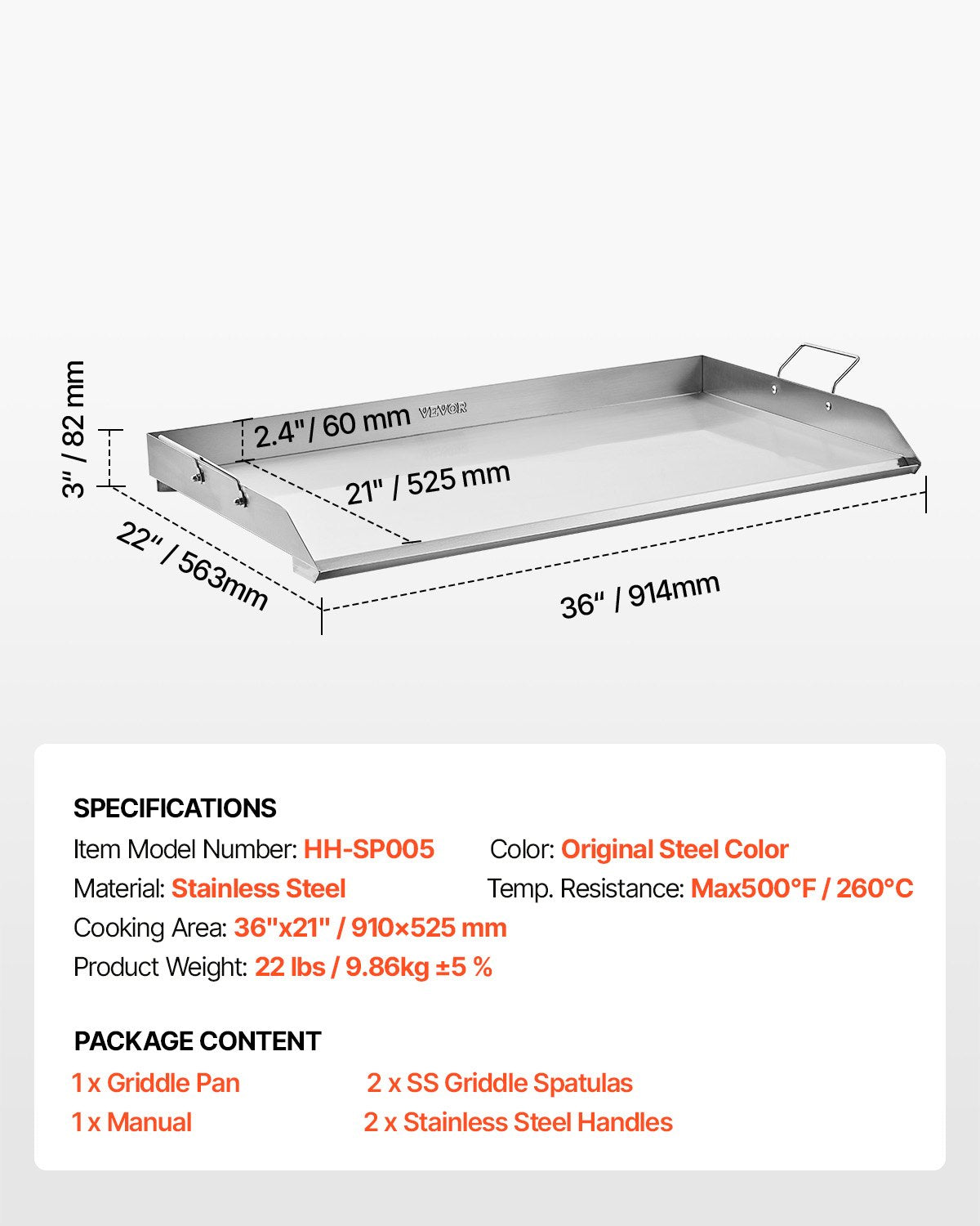 Made from durable stainless steel, this griddle for gas grill can handle temperatures up to 500_, giving you the freedom to cook at high heat. The bottom x-shaped reinforcement resists to deform