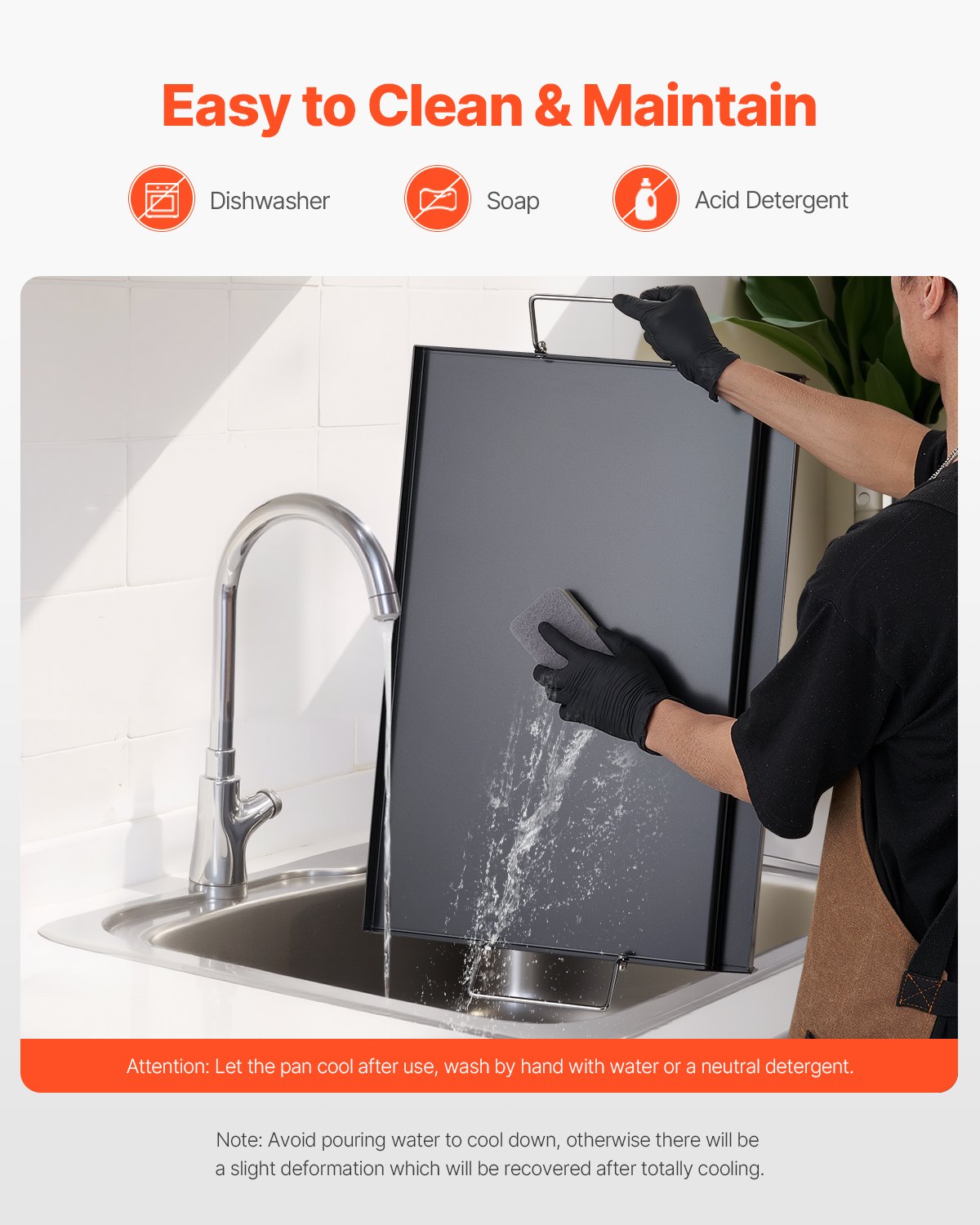 Made from durable carbon steel, this griddle for gas grill can handle temperatures up to 500℉, giving you the freedom to cook at high heat. The bottom x-shaped reinforcement resists to deform