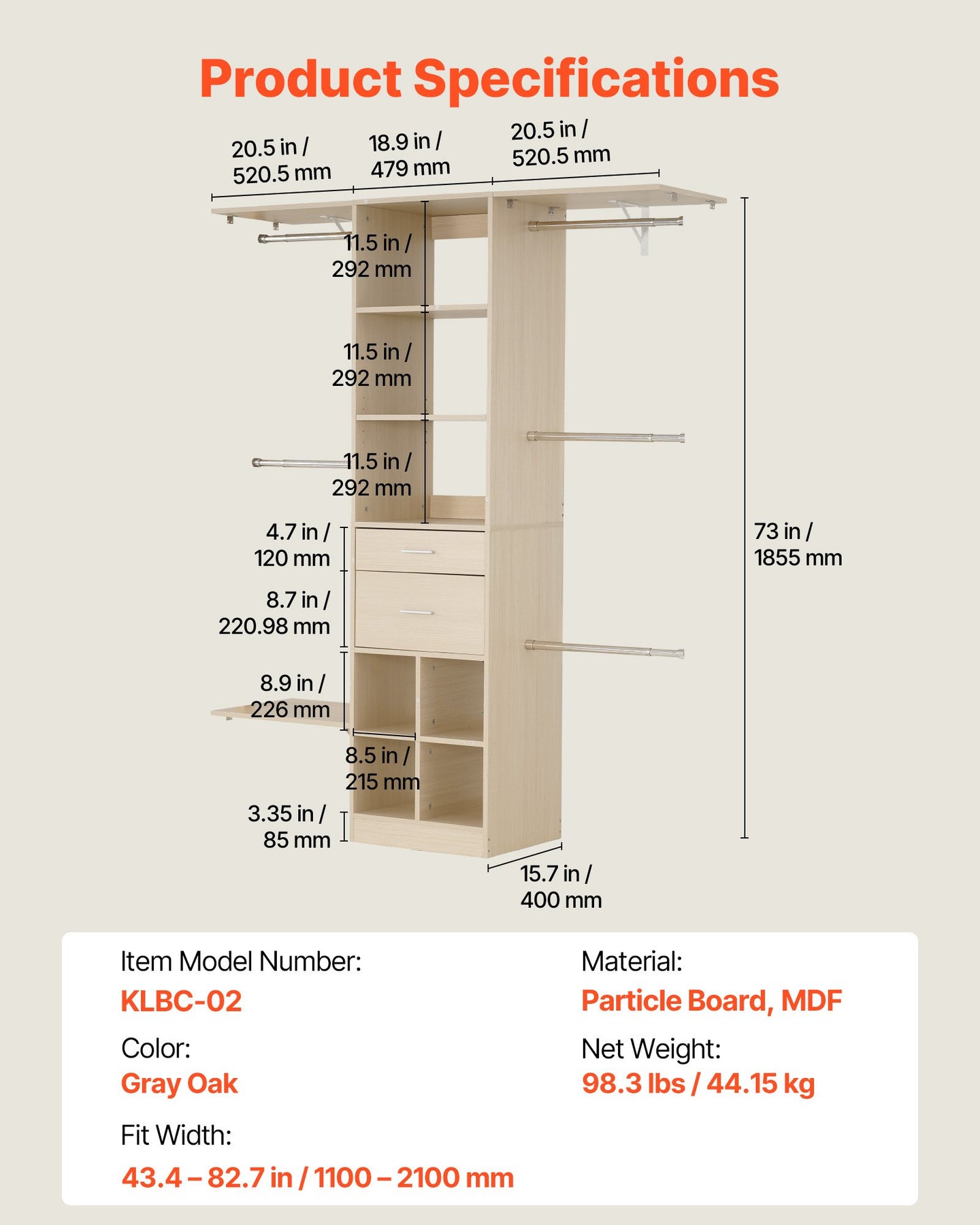 The wood closet organizer combines high-strength particleboard and moisture-resistant MDF panels with a melamine finish, offering easy cleaning and long-lasting performance