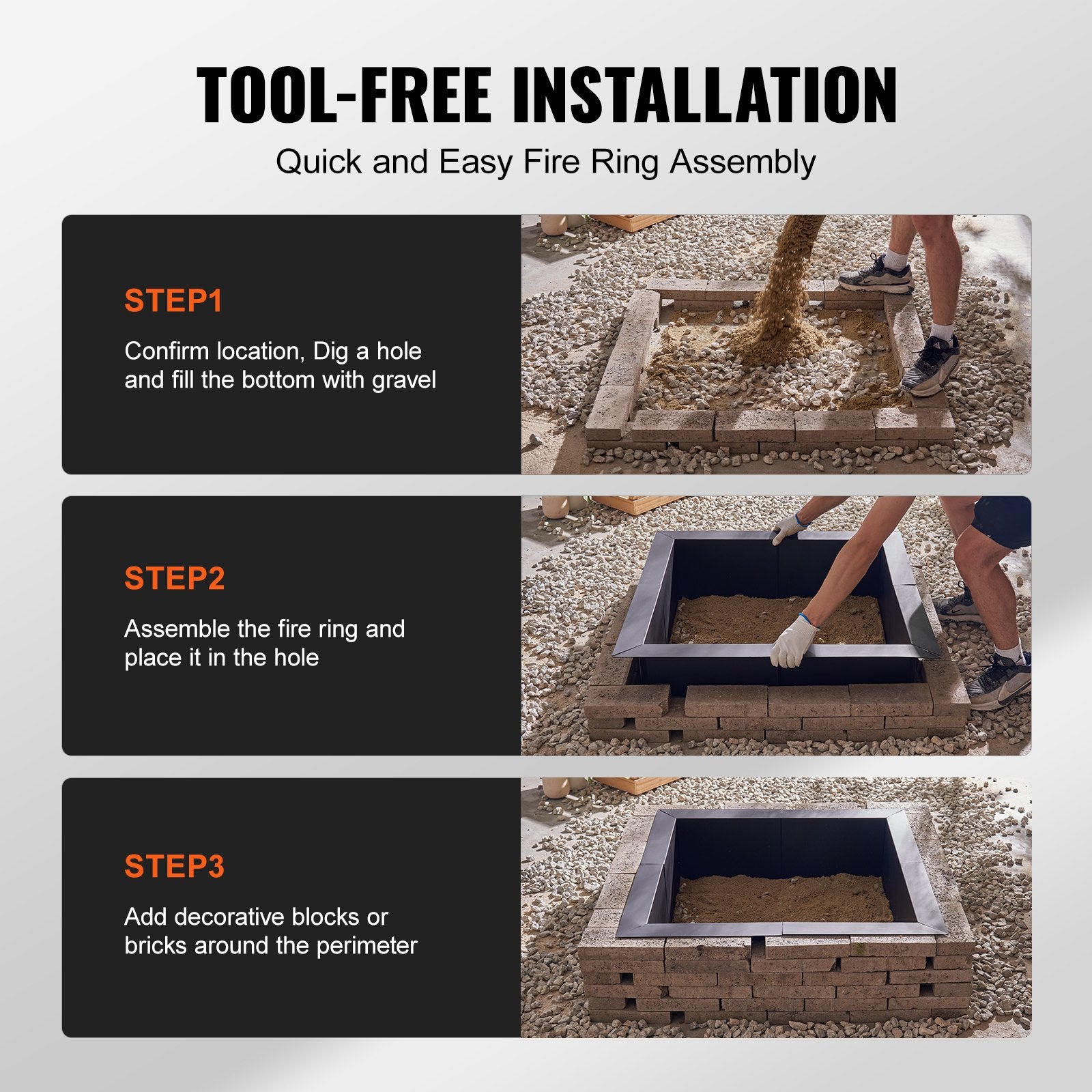Can be used independently as a fire pit liner or integrated with landscape materials like bricks or stones. When used alone, bury the bottom underground and surround with soil to create an in-ground fire pit.