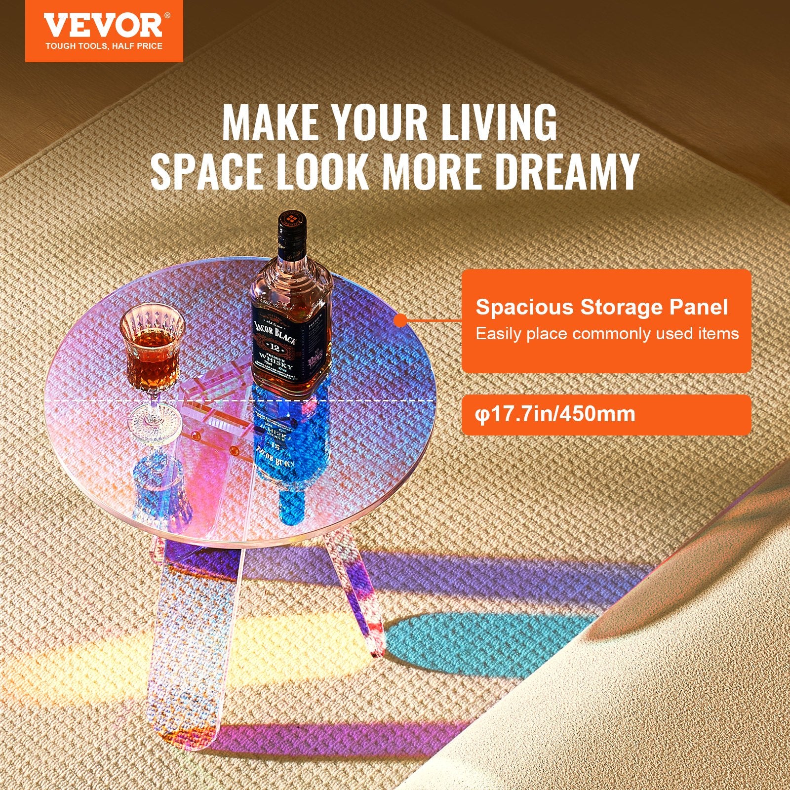 With a larger tabletop measuring φ17.7 inches, our acrylic end table not only provides storage for small items but also serves various functions such as displaying decorations and serving as a workstation. The smooth edges significantly reduce the risk of daily bumps and injuries.