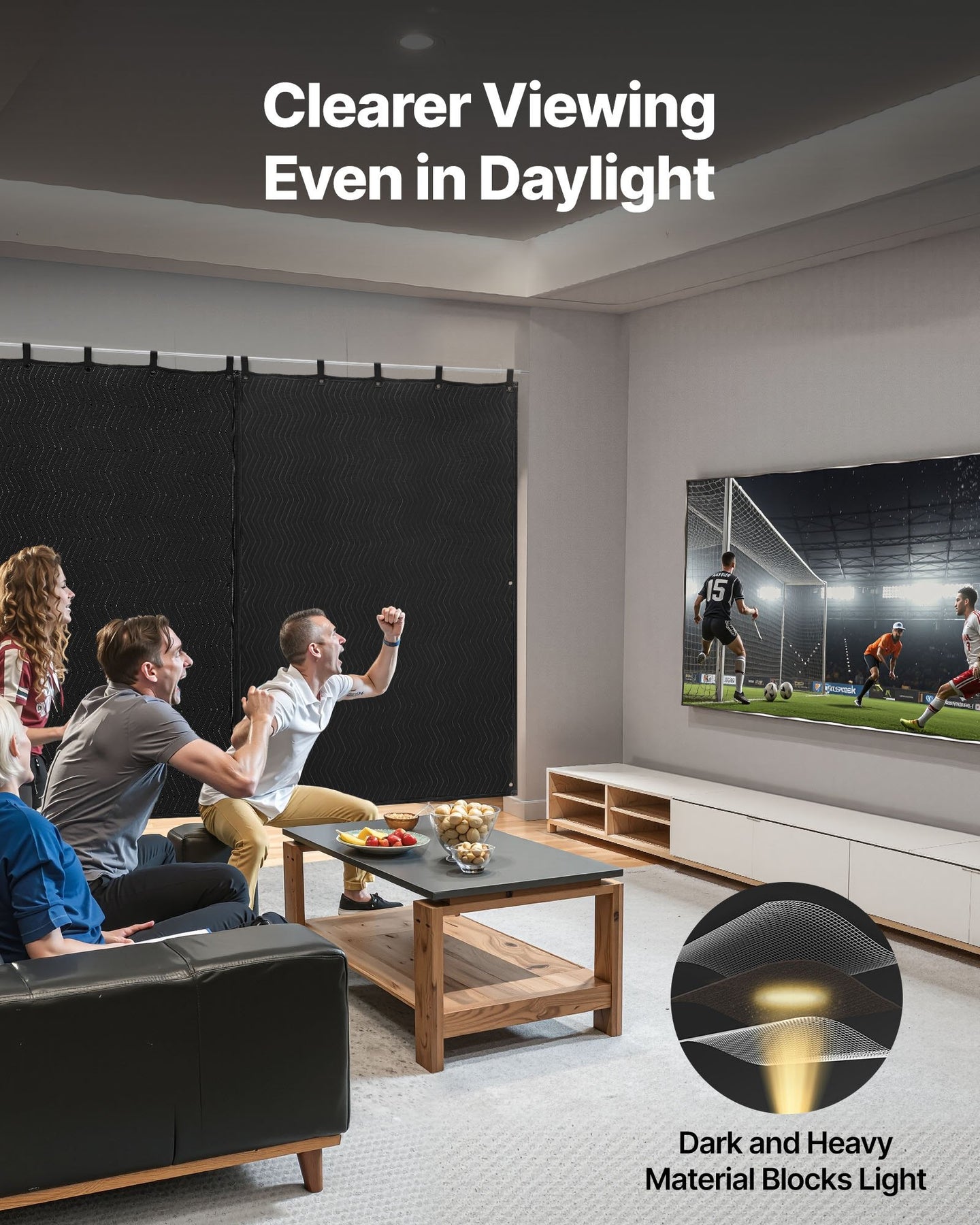 The thick, dense material and dark color effectively block light, creating a dim environment and avoiding glare. Ideal for home theaters, conference room projections, tents, or temporary darkrooms