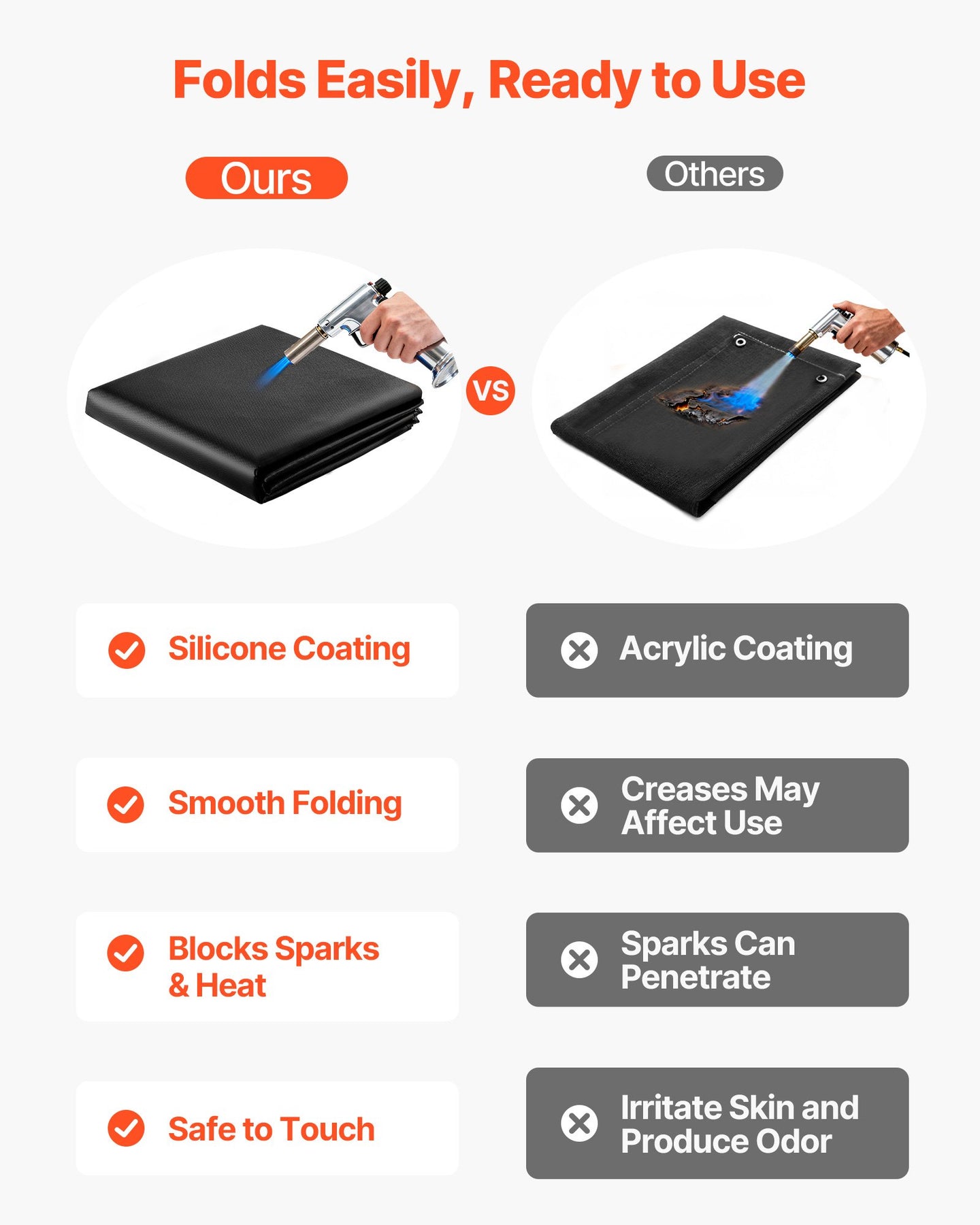 VEVOR 1219mm x 1829mm welding blanket withstands high temperatures up to 1800°F (982℃), delivering excellent heat and flame resistance to protect against sparks, flames, molten metal and intense heat