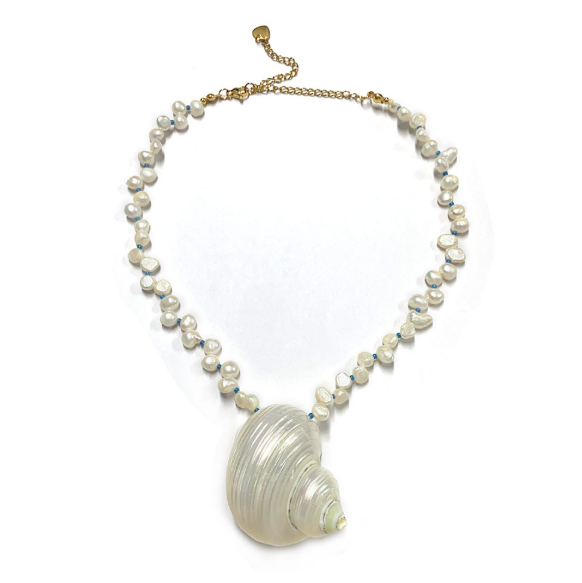 Each pendant showcases organic textures and irregular shapes preserved from real seashells, paired with polished pearls for subtle sophistication in a portable, allergy resistant chain designed for extended wear