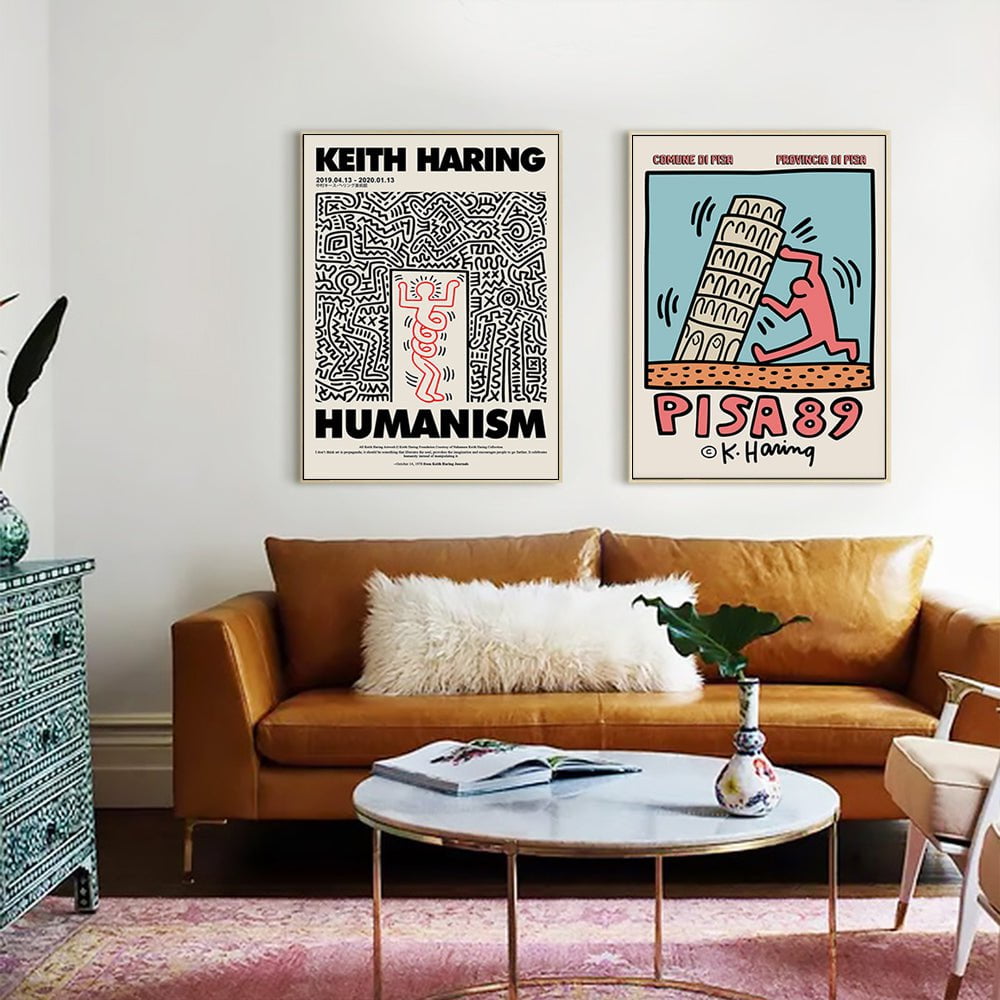 Wall Art 60cmx60cm By Keith Haring 2 Sets Gold Frame Canvas