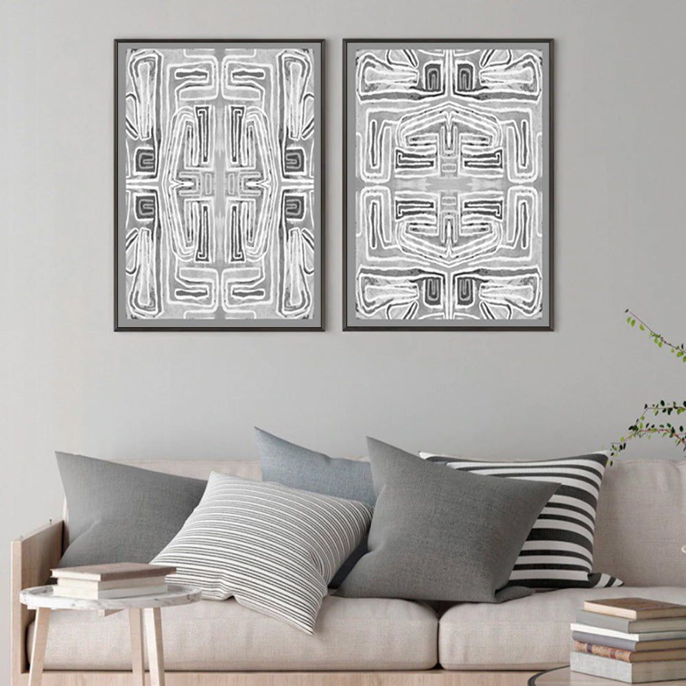 Wall Art 60cmx90cm Black White Pattern 2 Sets Black Frame Canvas