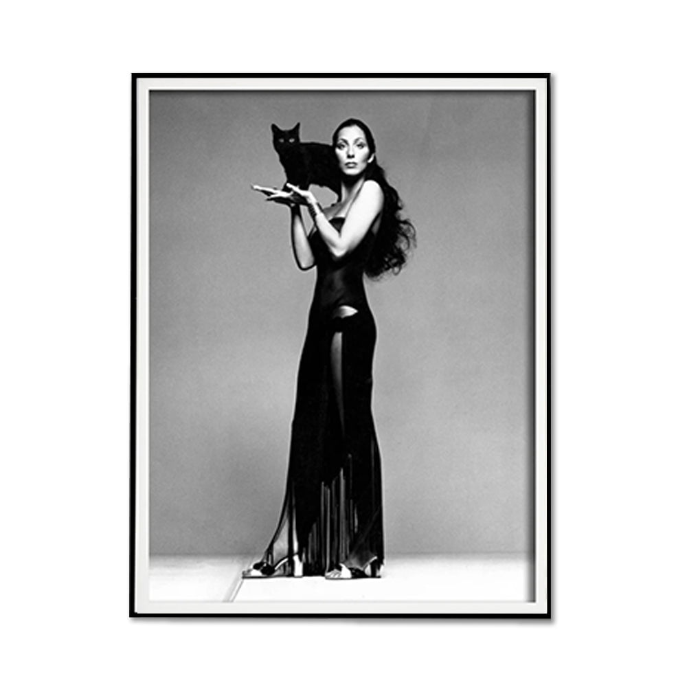 Wall Art 90cmx135cm Cher Music Black and White, Black Frame Canvas