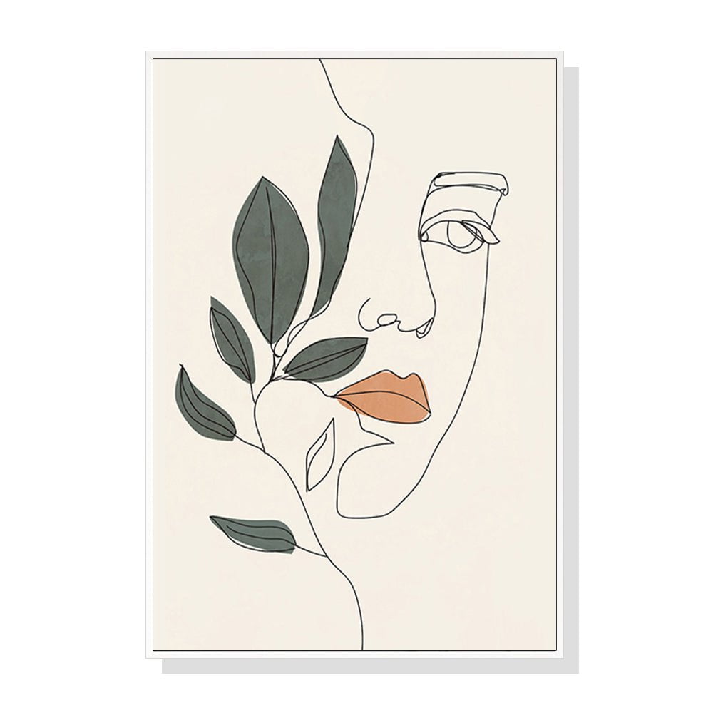 Wall Art 90cmx135cm Line Art Girl Face White Frame Canvas
