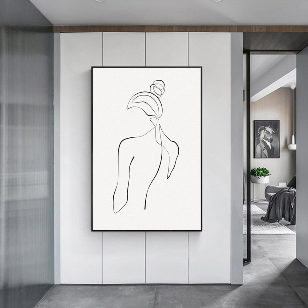 Wall Art 90cmx135cm Woman Back Line Art Black Frame Canvas