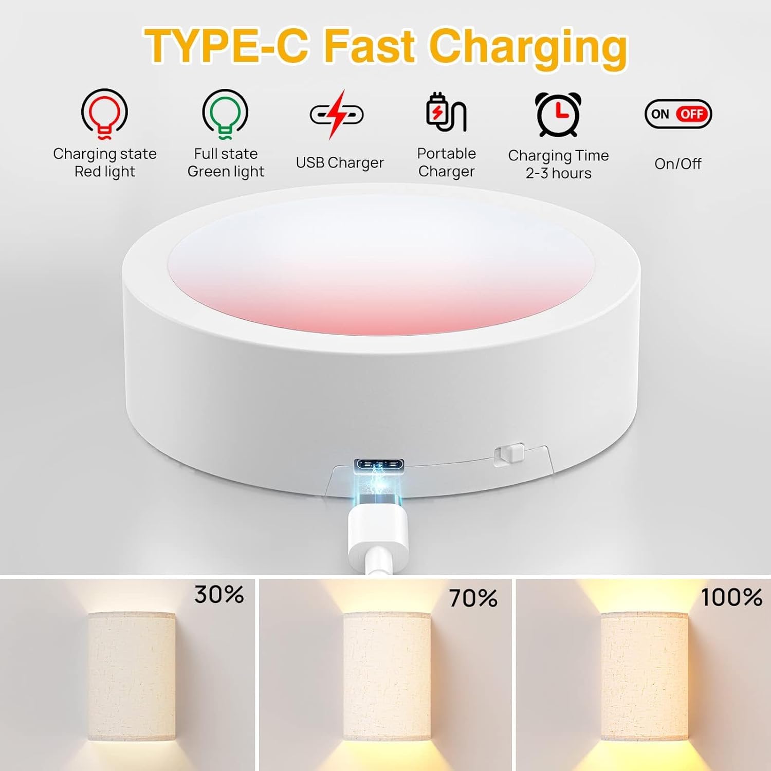 - [Magnetic Connection Easy to Install ] Our modern universal rechargeable wall sconces were no hard wires and no cords. A truly wireless wall sconce with magnetic puck lights, which are vertically magnet on the mounting plate, so that the lampshade has no shadow and the light is more uniform. Easy to take it off, and charge it at any time.