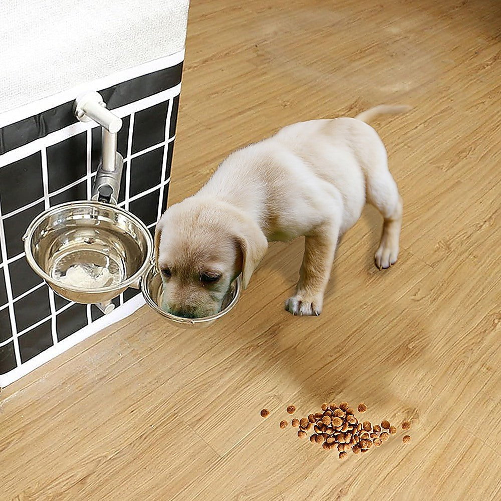 The stand can be securely affixed to the wall, and its bowl holder features a special locking system, ensuring stability during mealtimes and minimizing feeding-related noise. This setup provides a serene and comfortable dining space for your beloved pet. Elevated bowls prevent contact with the floor, reducing exposure to dirt-prone areas and creating a clean and secure feeding environment for your furry companions.