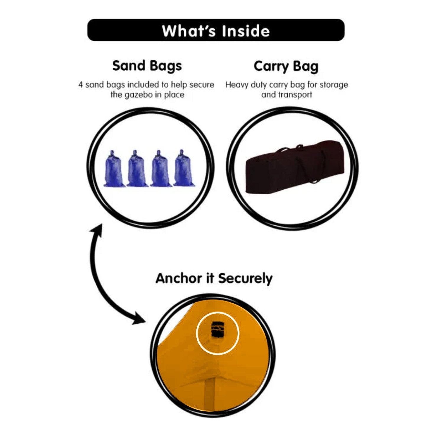 Everything you need: As well as the main unit and 5 walls this combo pack also comes with a handy carry bag and sandbags to help secure your marquee.