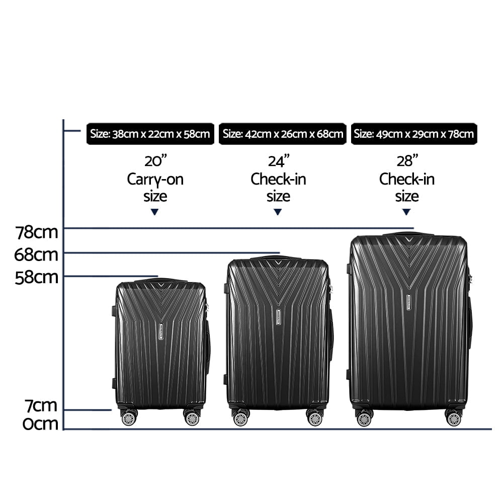 Featuring a durable hard shell, smooth dual wheels and secured TSA-approved locks, our luggage trolley set is easy to carry or manoeuvre around airports, train stations or any transport hub where getting there on time is as important as arriving with peace of mind. Super lightweight and yet strong and sturdy, the Wanderlite Trolley Set comprises 28”, 24”and 20” sizes of which the two smaller ones can be kept in the largest luggage. Aluminium pull rod, corner guard protectors and top and side handles add to the effortless handling of each luggage.So start packing with our Wanderlite 3-piece Luggage Trolley Set and begin your wanderlust today!