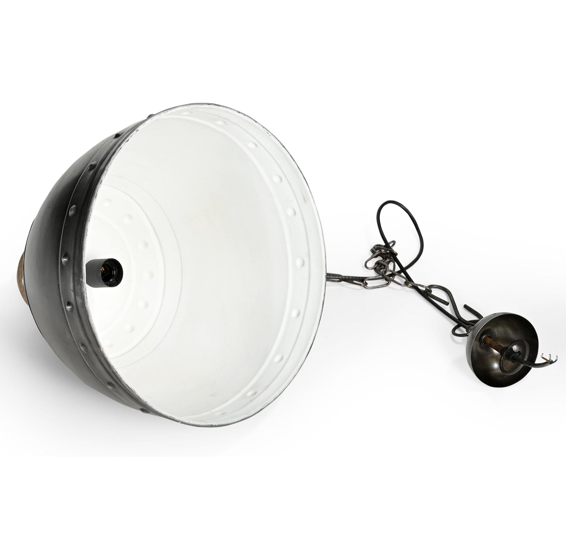 Another stunning new addition to the Phil Bee Interiors lampshade collection, this washed iron lampshade has a striking minimalist industrial look. Set from cast iron and fastened with a hand carved wooden top, this domed piece will look striking and bold in any setting. Note: Includes wiring kit separate,chain, and globe holder. Must be installed by a licensed electrician only.