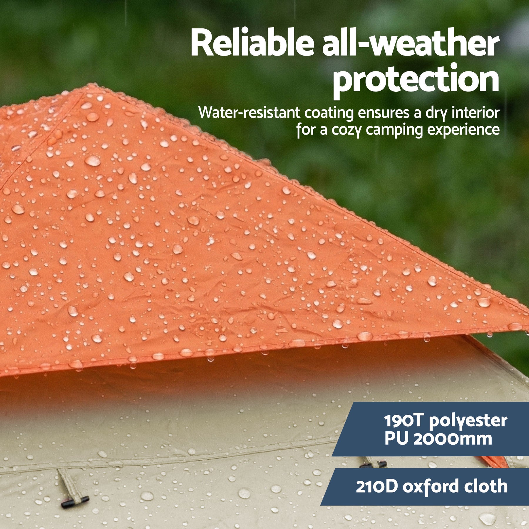 RELIABLE ALL-WEATHER PROTECTION: Built for the Aussie climate, the 190T polyester rainfly boasts a PU2000mm rating, while the heavy-duty 210D Oxford cloth floor keeps ground moisture at bay. Stay cozy and dry regardless of the weather.