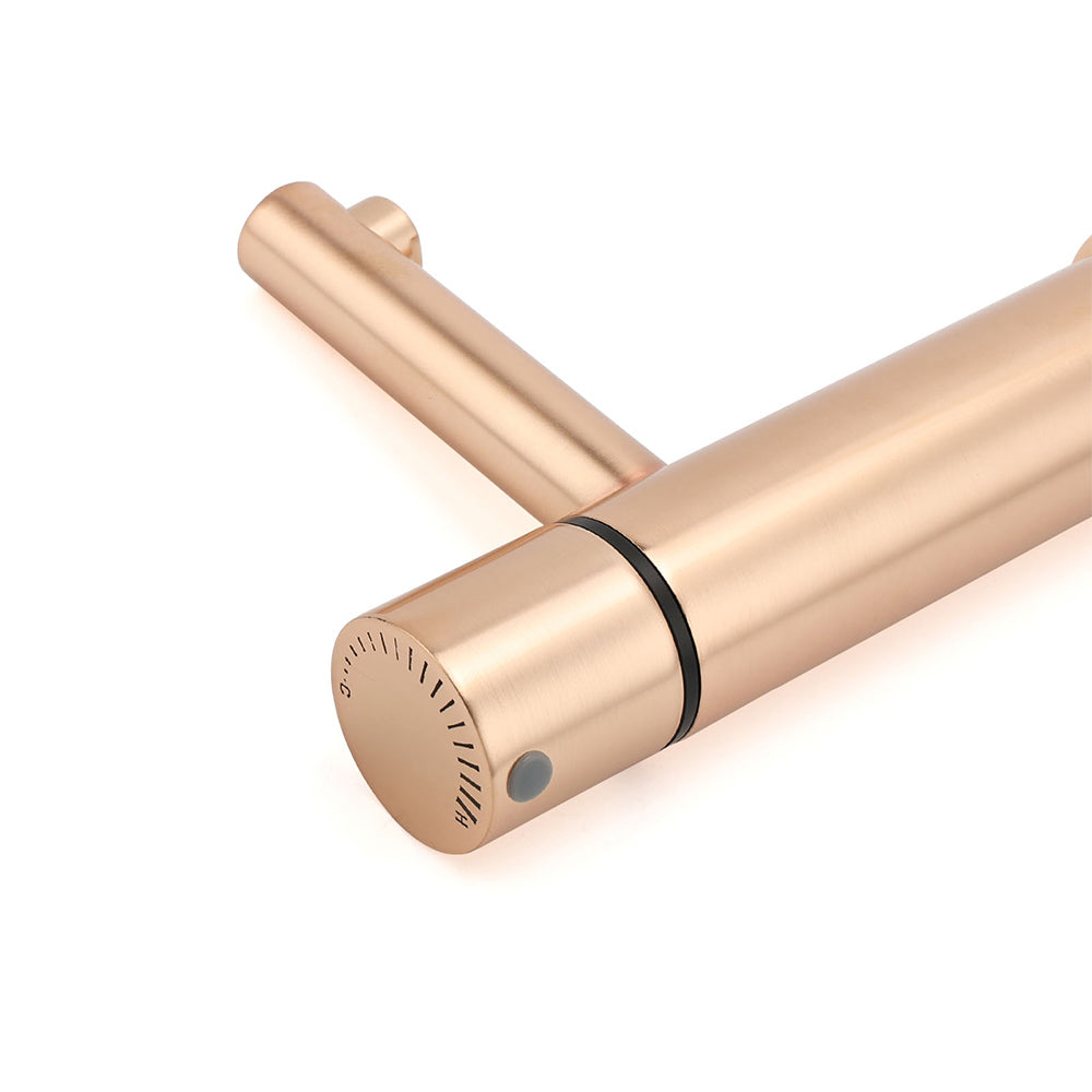 - Finish: Brushed rose gold