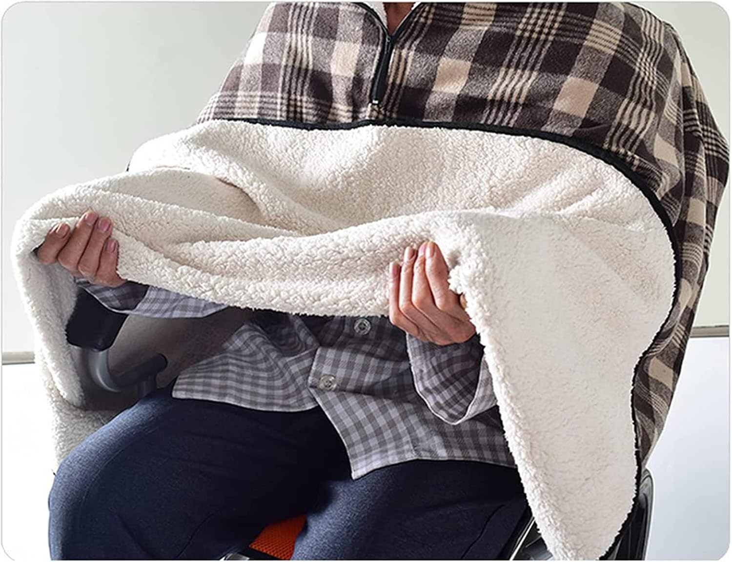 Wheelchair Blanket Adult Fleece-Lined Wheelchair Cape with Hood, Wheelchair Clothing Winter Poncho Cape Coat for Women and Men Wheelchair Cosy Cover Warm Blanket