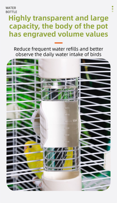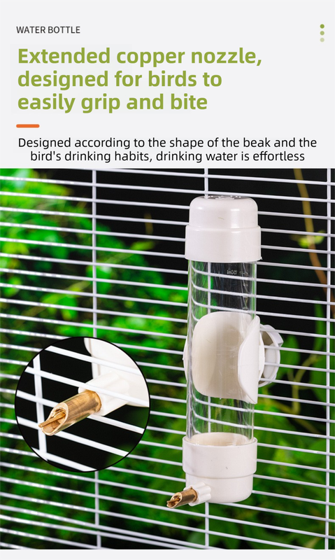 Ensure your feathered friends always have access to fresh, uncontaminated water with our Professional Automatic Bird Waterer. Unlike traditional open bowls that get messy with feathers and droppings, this dispenser features a durable, extended brass needle valve. Water only flows when your bird pecks the needle, preventing leaks and keeping the cage bone-dry. Crafted from high-clarity, food-grade PS material, the reservoir features clear graduation marks so you can monitor your bird's daily water intake at a glance.