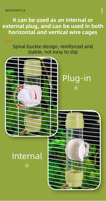- Universal Mounting System: Designed for versatility; it can be mounted inside or outside the cage and is compatible with both horizontal and vertical cage bars.
