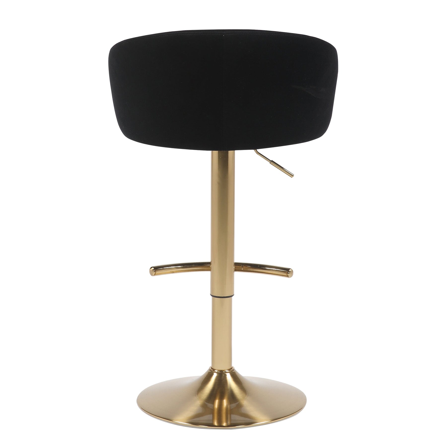 Impart a touch of regal air to your kitchen bench with our Gas Lift Bar Stool. Offering magnificent comfort, its gleaming gold-brass chrome base pairs beautifully with a touch of luxurious black velvet to create a superior piece of furniture that complements any modern style..
