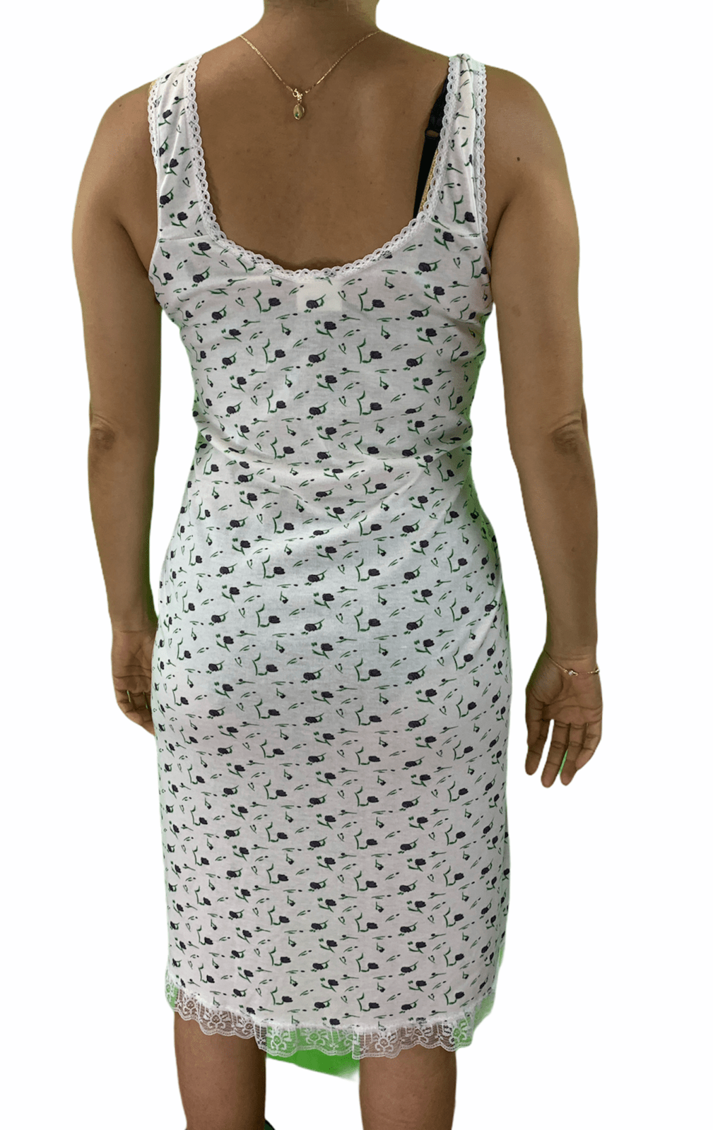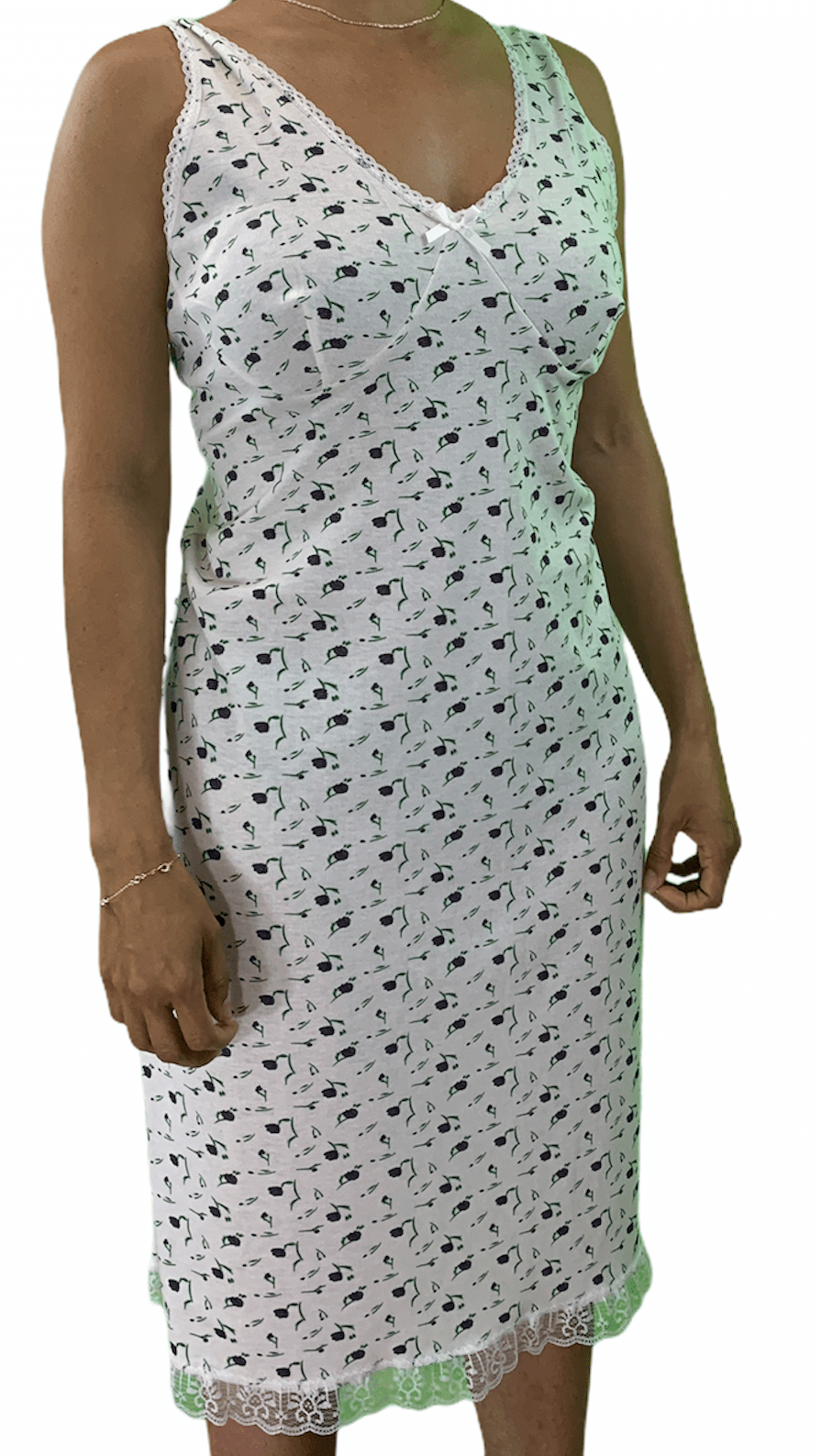 - Lovely Soft Cotton material - Sleeveless, breathable "airy" style - Lovely lace detail on neckline, arm opening and bottom hem