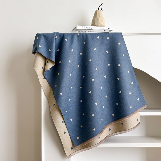 The elegant double-sided jacquard pattern with heart shapes gives the scarf a cute, retro and feminine look. Easy to combine with jeans, dresses, leggings or winter coats - suitable for both casual and fashionable outfits.