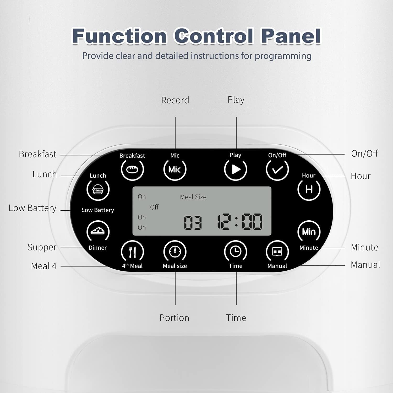 - Voice recording with 10 seconds to accompany your pet eating.