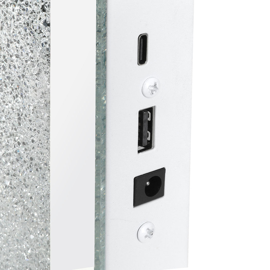 Designed with flexibility, this vanity mirror can be gracefully placed on a tabletop or securely hung on a wall, ensuring it fits into any bathroom or dressing area. Its sleek crystal-like finish and modern touch controls lend a luxurious touch to any space, while its practical features ensure it's a must-have for any beauty enthusiast.